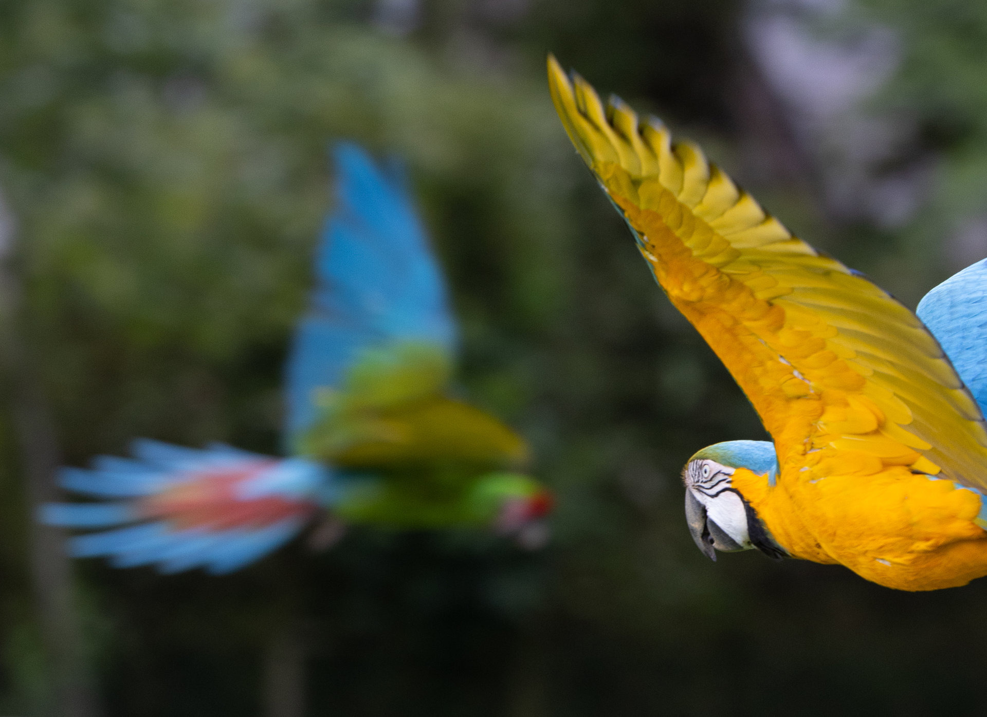 Les perroquets : aras chloroptères, ara bleus et ara jaunes