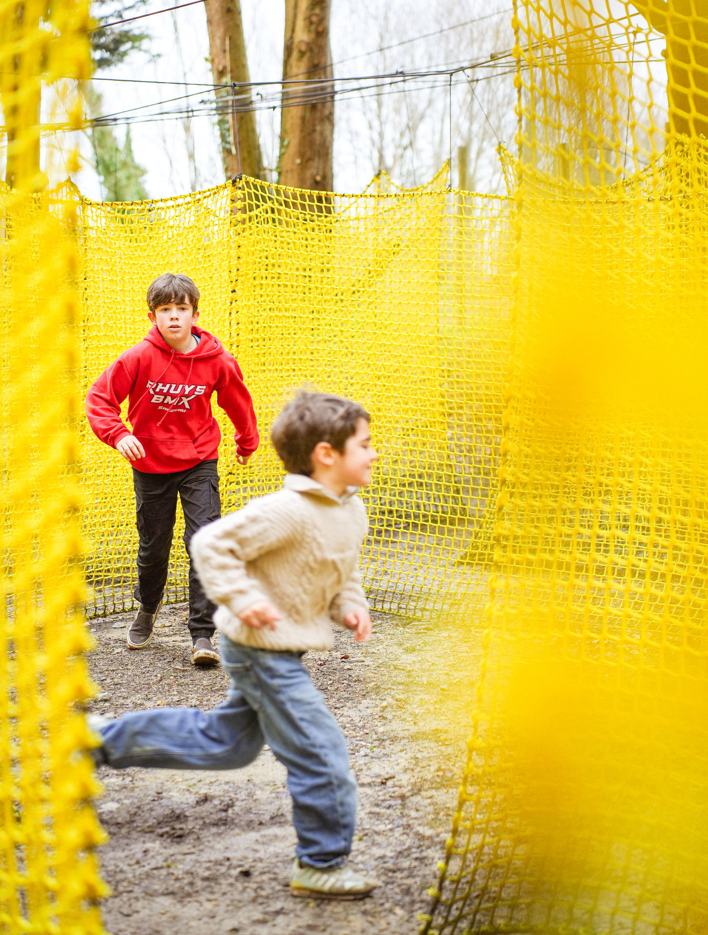 Anciennement appelée le Parcabout, cette aire de jeu est située à l’écart des animaux afin de préserver leur tranquillité, les filets tendus de ce parc de loisirs n’imposent aucune contrainte ou force sur les arbres. Étudié en fonction du lieu et de la disposition des arbres, il ne dénature pas le paysage. Les filets sont régulièrement déplacés en fonction du cycle naturel des arbres afin de préserver leur bien-être.