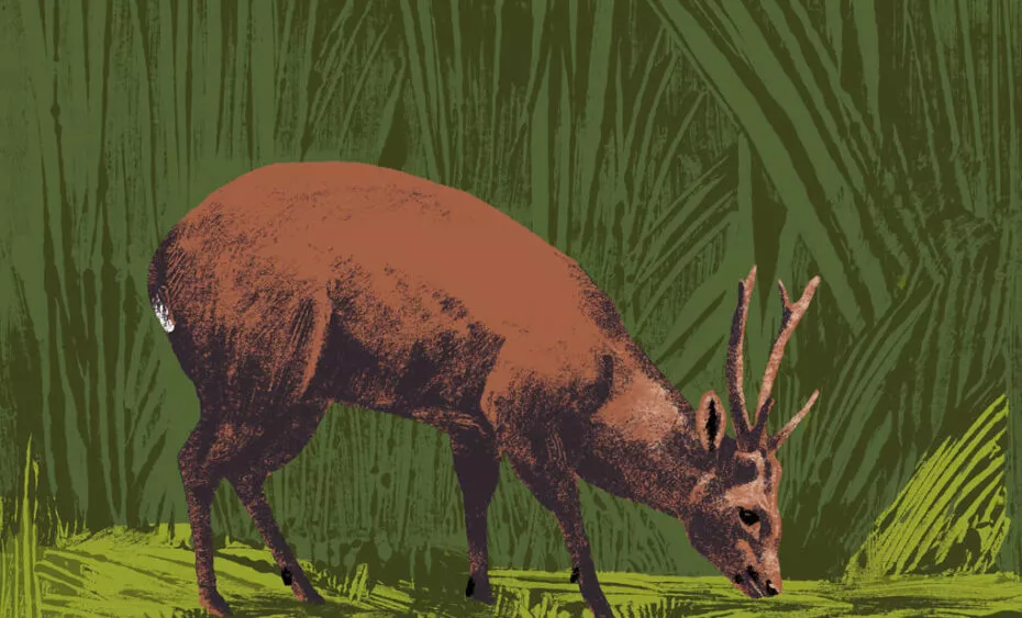 Le nom du cerf cochon provient de sa manière caractéristique de courir et de s’enfuir. Contrairement à d’autres cervidés qui bondissent, le cerf cochon garde la tête basse et traverse rapidement les hautes herbes en se faufilant, un comportement qui l’aide à éviter les prédateurs.