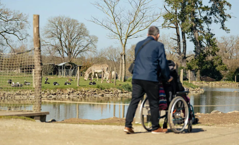 70% du parc est accessible aux personnes à mobilité réduite, un parcours vous permet de découvrir la majorité de nos espaces et de nos animaux. Un plan indiquant les chemins adaptés est disponible sur notre site internet (page plan et accès) ou sur demande à l’accueil billetterie boutique.