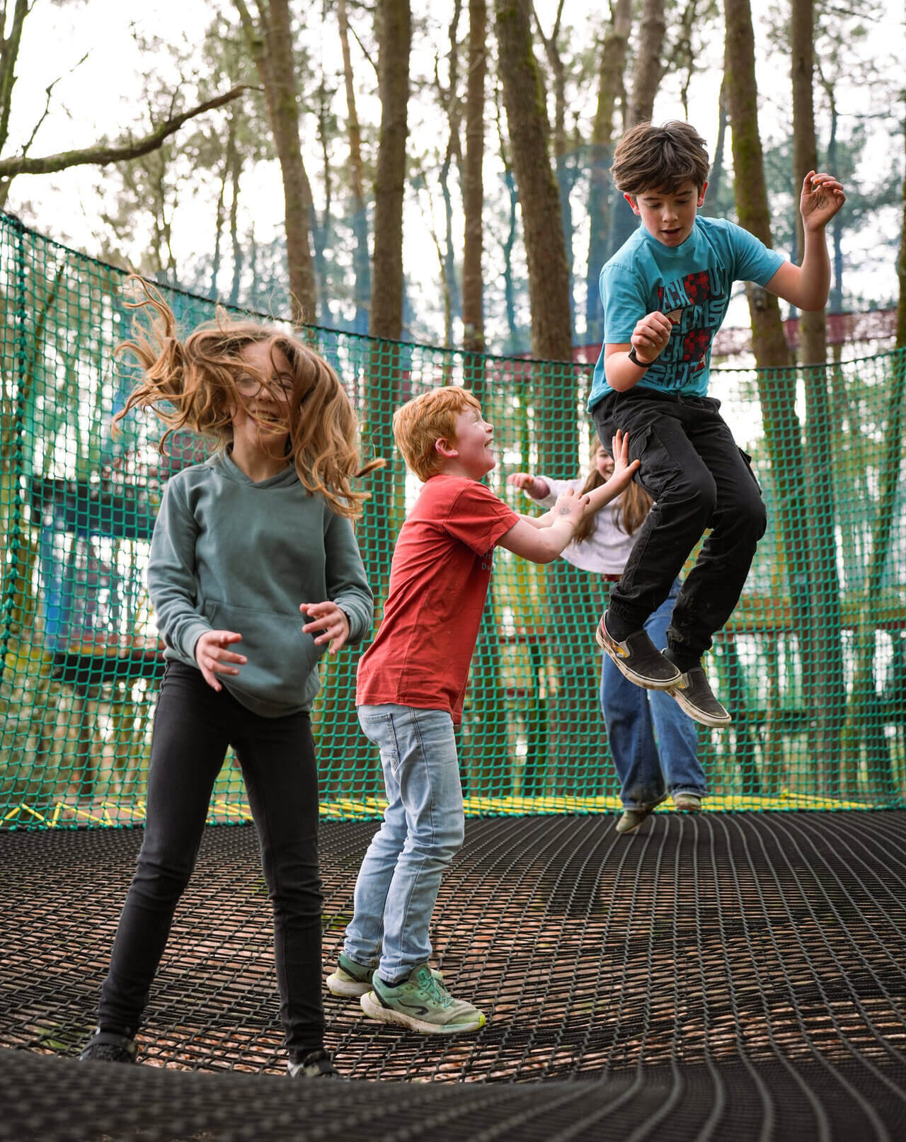 À l’écart des animaux afin de préserver leur tranquillité, les trampolines géants n’imposent aucune contrainte ou force sur les arbres. Étudié en fonction du lieu et de la disposition des arbres, il ne dénature pas le paysage. Les filets sont régulièrement déplacés en fonction du cycle naturel des arbres afin de préserver leur bien-être.